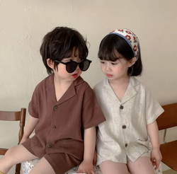 2003 New Kinder Leinen Stoff Full Sleeve Kleid Top Shorts Bequemes Set